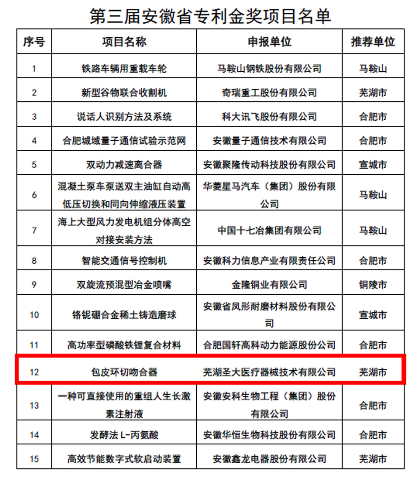 蕪湖圣大醫療器械技術有限公司“包皮環切吻合器”榮獲第三屆安徽省專利金獎